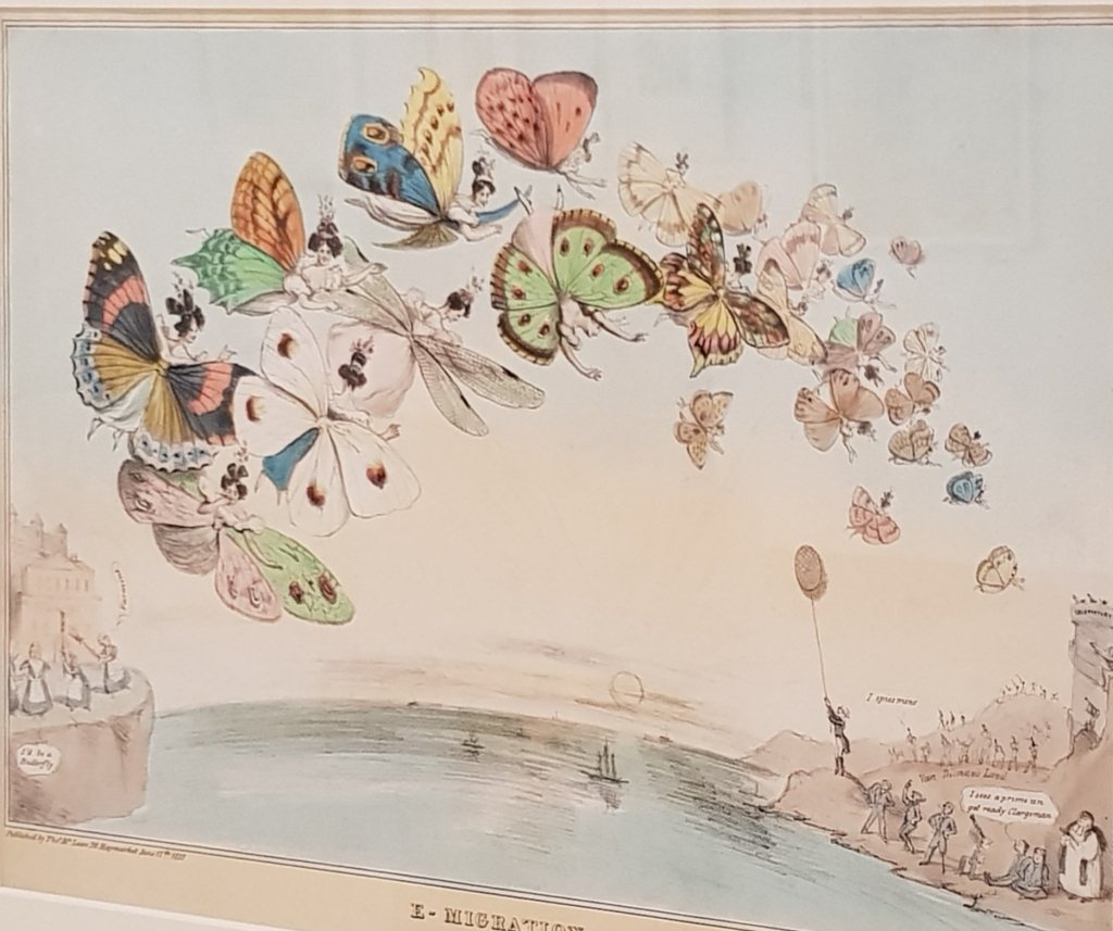 E-MIGRATION or A FLIGHT OF FAIR GAME by Alfred Ducote, 1832. Hand coloured lithograph Allport Library and Museum of Fine Arts.